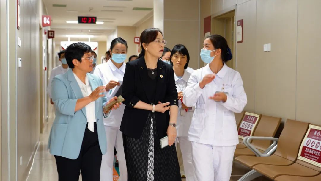 中山一院护理部主任徐朝艳在市中山医院副院长苏永静的陪同下深入医院急诊科,认真听取科室护士长对急诊的科室布局、设施配备以及日常工作流程等方面的介绍,并针对科室护理人员在工作中遇到的疑难问题进行细致地解答和指导。
