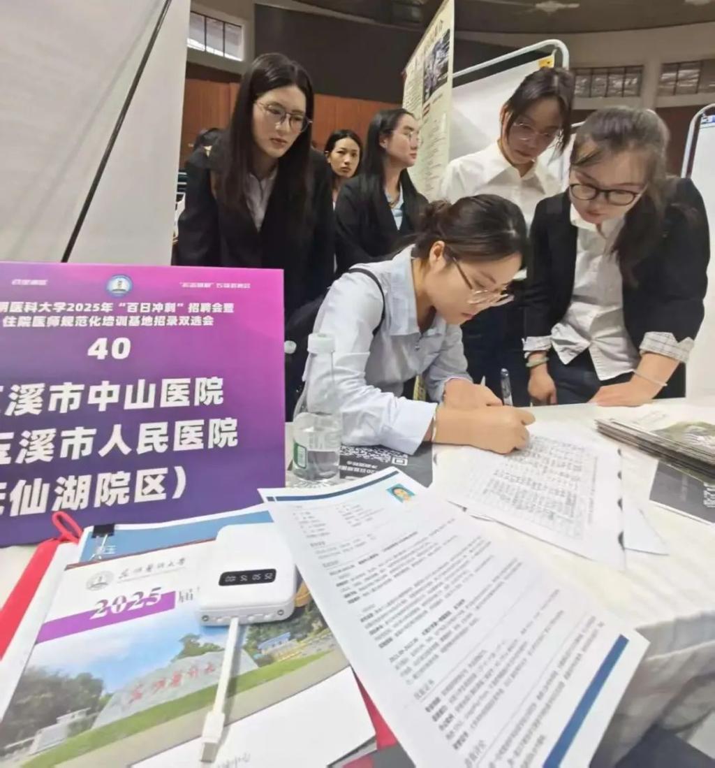 医院先后奔赴昆明、玉溪两地,参与昆明医科大学双选会、全省博士招聘双选会等4场大型人才交流活动,在招聘现场,通过播放发展纪实片、设置宣传展架等方式,全方位展示从区域医疗标杆到现代化三级医院的历程;医院作为省级重症区域医疗中心建设单位,其儿科、骨科两大省级重点专科凭借先进设备与前沿技术成果,彰显出强劲实力;而创新设立的医教协同“中山班”,以“理论+实践+科研”的培养模式吸引众多学子关注。同时,现场发放的宣传手册详细介绍了“引才、育才、留才”全周期人才战略及接轨国际的进修机会,让学子感受到医院对人才培养的大力支持。
