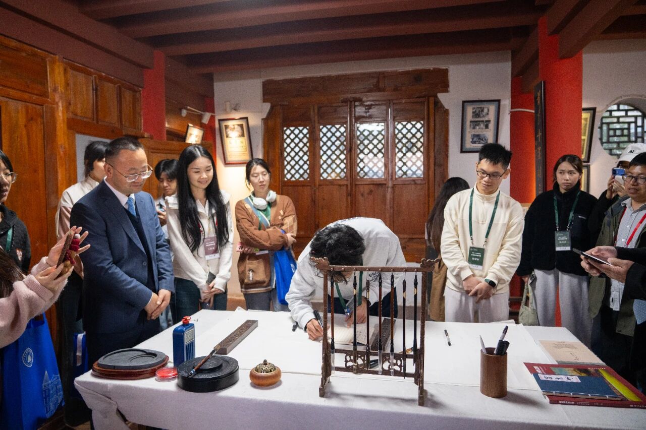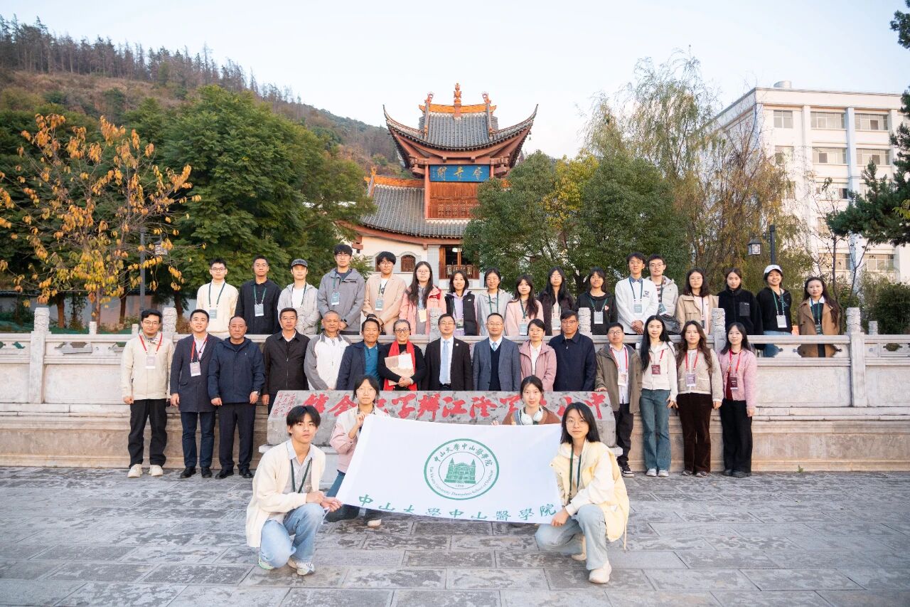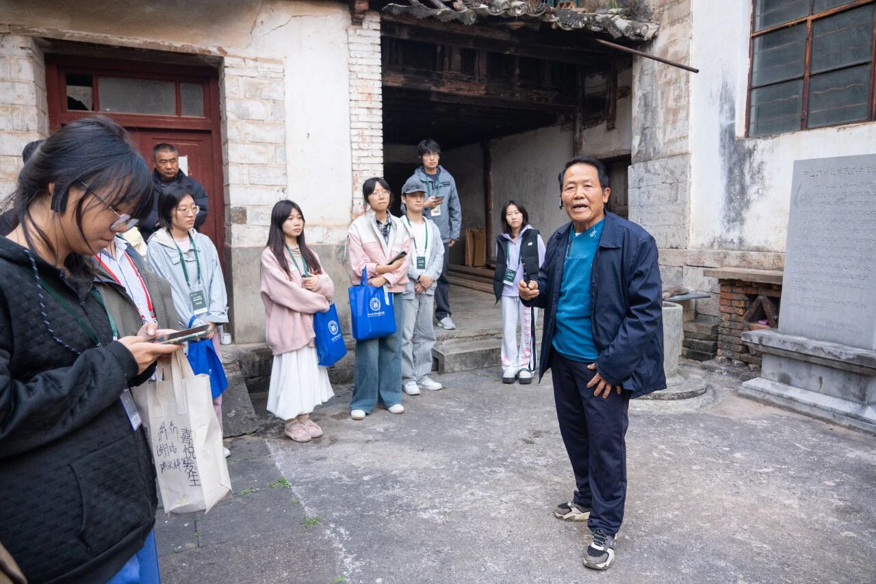12月3日下午,调研团队循着历史足迹,先后走访了澄江市凤山公园(中山大学西迁澄江办学纪念苑)、凤麓镇普福寺、极乐寺及小西城三教寺等中山大学西迁办学旧址。在小西城三教寺,邀请到李旭辉前辈口述当年中山医师生在艰苦条件下开展澄江市第一例剖宫产手术的峥嵘往事,生动再现了1939年中山医学院迁滇后,在寺庙办学、借井取水、坚持教学科研的奋斗历程。在中山大学西迁纪念馆(层青阁),泛黄的史料、珍贵的实物让师生深刻感悟到“家国为重、坚韧不拔”的中山大学西迁精神,以及中山大学与云南人民、澄江人民在战火中结下的深厚情谊。