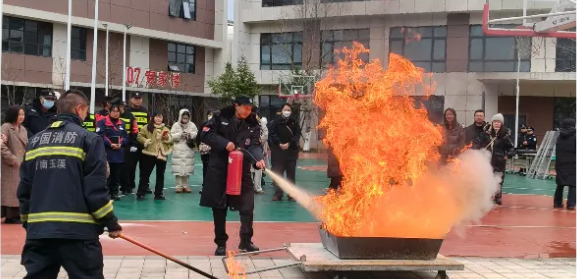 理论教学结束后,民警组织开展突发险情处置模拟演练,现场展示警犬、无人机等警卫设备的实战应用,并开展灭火器实操培训,让参训人员在实操中熟练掌握安全防控技能,积累实战经验。