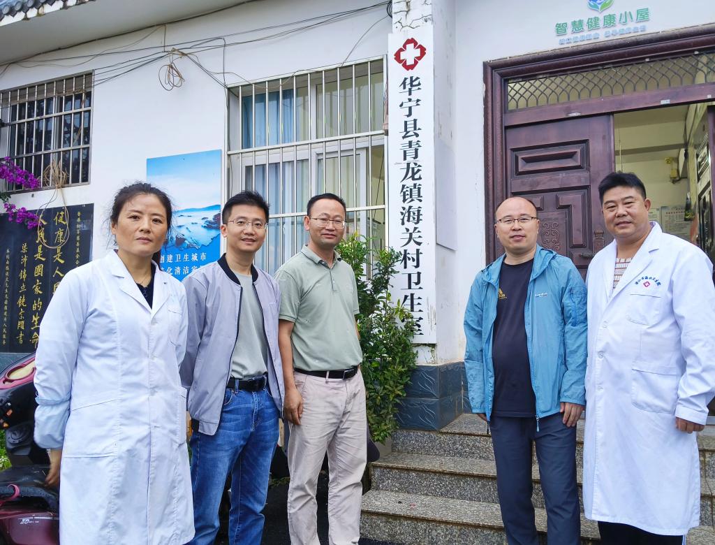 10月18日,王洪刚、黄光亮在医院党委书记施纯律陪同下,前往华宁县青龙镇海关村卫生室开展调研访诊。
