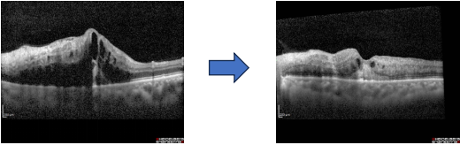 图片2.png患者术前的光学相干断层扫描(OCT)结果,可见黄斑水肿明显,术后水肿减轻。