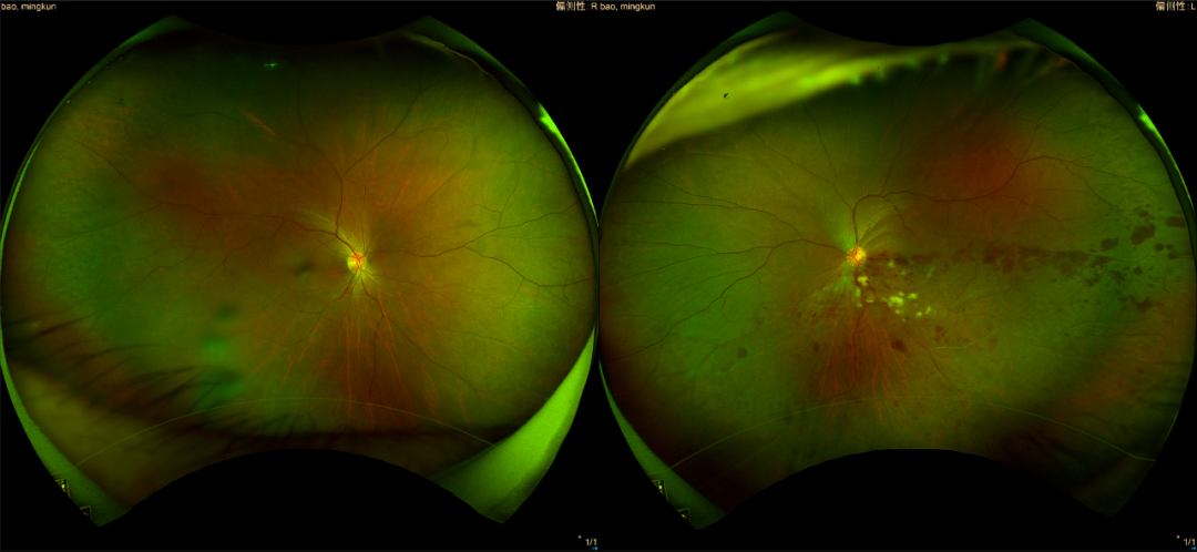 患者王大叔(化名)1月前感觉视力下降,没有引起重视,2025年8月18日来我院检查时,视力只有数指/20cm(手指头要放在眼前20cm的地方才看得到)。为找准病因,医院使用两台最新设备——欧堡超广角激光扫描检眼镜及海德堡光学相干断层扫描(OCT),为王大叔进行检查,发现王大叔左眼眼底有出血,眼底黄斑(影响视力最重要的地方)水肿明显。诊断为左眼视网膜分支静脉阻塞。
