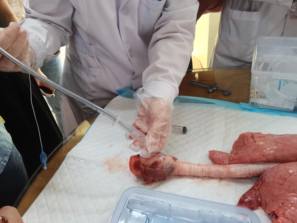 实操训练环节更是此次学习的重点。科室悉心准备了猪气管等真实脏器以及先进的模拟模型人,为医护人员营造了极度贴近实战的训练环境。科内医护人员纷纷上阵,亲身体验气管插管、气管切开等高难度操作。每一次尝试都是对技能的精心打磨,每一次成功都是对生命的坚定守护。经过反复练习,大家不仅熟练掌握了正确的操作流程,更在实践中增进了信心,培养了默契。