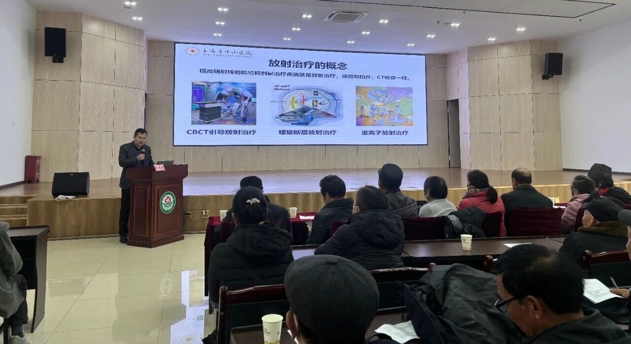 紧接着,玉溪市中山医院放射治疗科主任刁先民围绕放射治疗科普讲座。刁主任笑着说:“肿瘤治疗里的放疗,其实就和平常拍CT一样简单,一点都不可怕,大家完全不用慌,放疗后好好休息,身体就能恢复到正常状态。而且放疗肿瘤,不仅风险低,能精准对付癌细胞,疗效显著,帮我们控制病情。”这番话像一颗“定心丸”,让老人们对肿瘤治疗有了全新的认识。