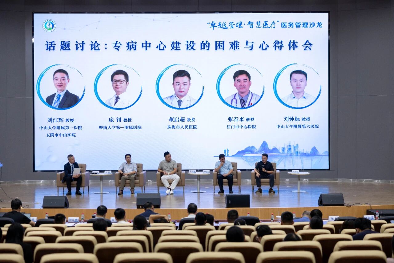 在“专病中心建设的困难与心得体会”专题讨论中,玉溪市中山医院副院长刘江辉,暨南大学第一附属医院医务部主任庞钊,珠海市人民医院医务部主任、横琴院区建设办主任董启超,江门市中心医院医务部主任张春来,中山大学附属第六医院医政处副处长、质量控制科科长刘钟标五位专家,直面资源调配、多学科协作、患者引流等实际难题,分享通过政策协调、流程优化、技术赋能破解困境的成功案例,让参会者对专病中心建设的复杂性与推进策略有了更全面认知。