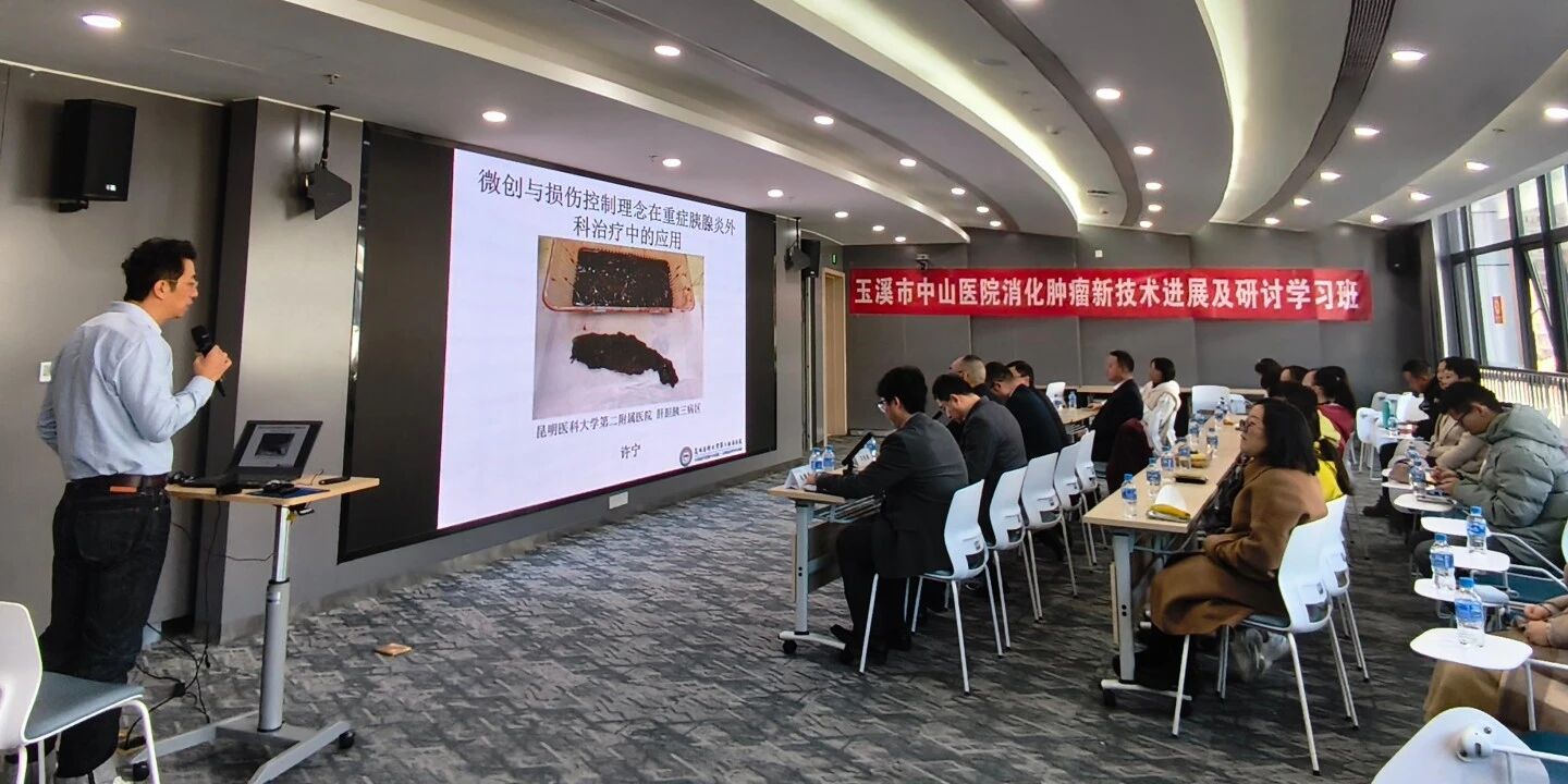 2025年11月29日,由玉溪市医学会与玉溪市中山医院联合主办的消化肿瘤新技术进展及研讨学习班在院内成功举办。作为市级继续教育项目,活动汇聚全市消化、肿瘤领域临床骨干,以专题讲座、病例研讨、技术交流为核心,搭建起高质量学术交流平台。活动由医院肝胆胃肠外科主任张鸿坤主持。