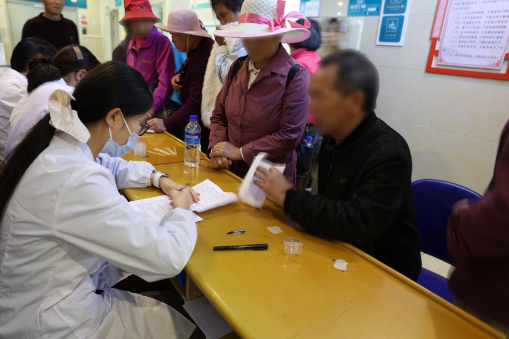 讲座结束后,义诊筛查有序开展。工作人员早已为老人们发放了号码牌和基础信息填写单,耐心指导大家填写:“爷爷奶奶们放心,我们按顺序叫号检查,今天一定把所有到场的人都检查完。”筛查现场设置了直肠指检、粪便潜血试验和血压测量等多个区域,医护人员细致地为每位老人进行检查,同时解答大家的疑问。“大爷,您平时在家血压控制得怎么样?这次测量结果很正常,继续保持好的生活习惯就行。” 血压测量区的工作人员一边记录数据,一边贴心叮嘱。