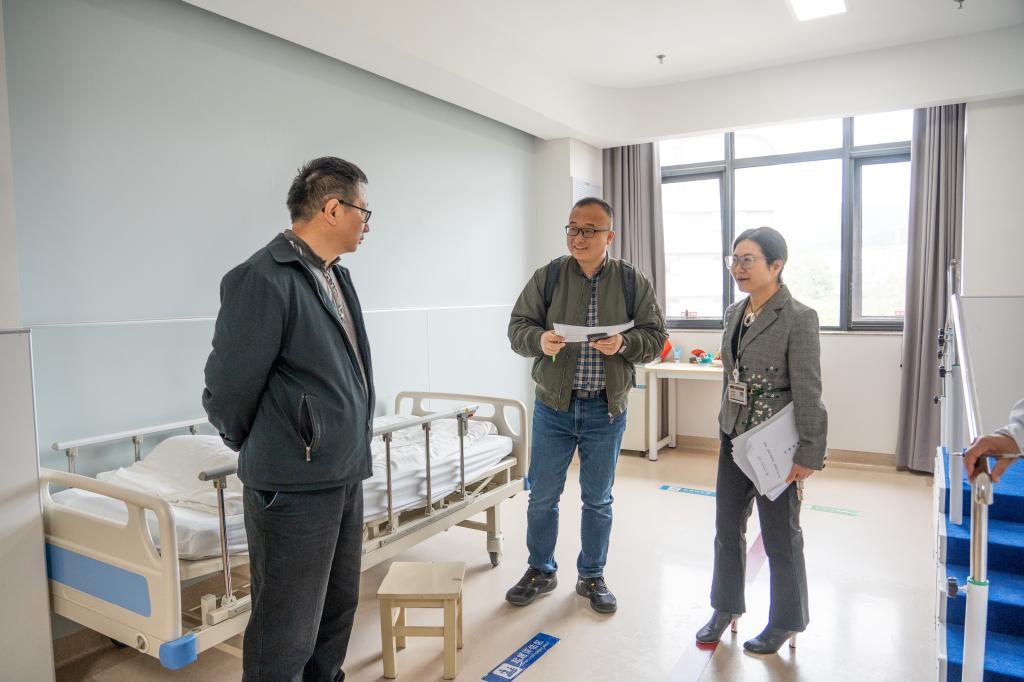 验收组在听完汇报之后,随即深入老年医学科门诊、病房、治疗区及康复区域进行实地检查,重点核查适老设施配置、急救设备功能、诊疗流程规范等情况。验收组对科室建设亮点给予高度评价,尤其肯定了科室具备完善的标准化设施配置,认为其充分体现了“以老年患者为中心”的服务理念;同时,对科室病房功能区设置、患者收治规范等表示肯定。针对检查中发现的问题:如配膳间的增设、安宁病房的人文建设,以及多学科诊疗(MDT)的常态化开展、内涵完善提出了具体改进建议,要求进一步优化适老服务细节,提升复杂老年病的综合诊疗能力。