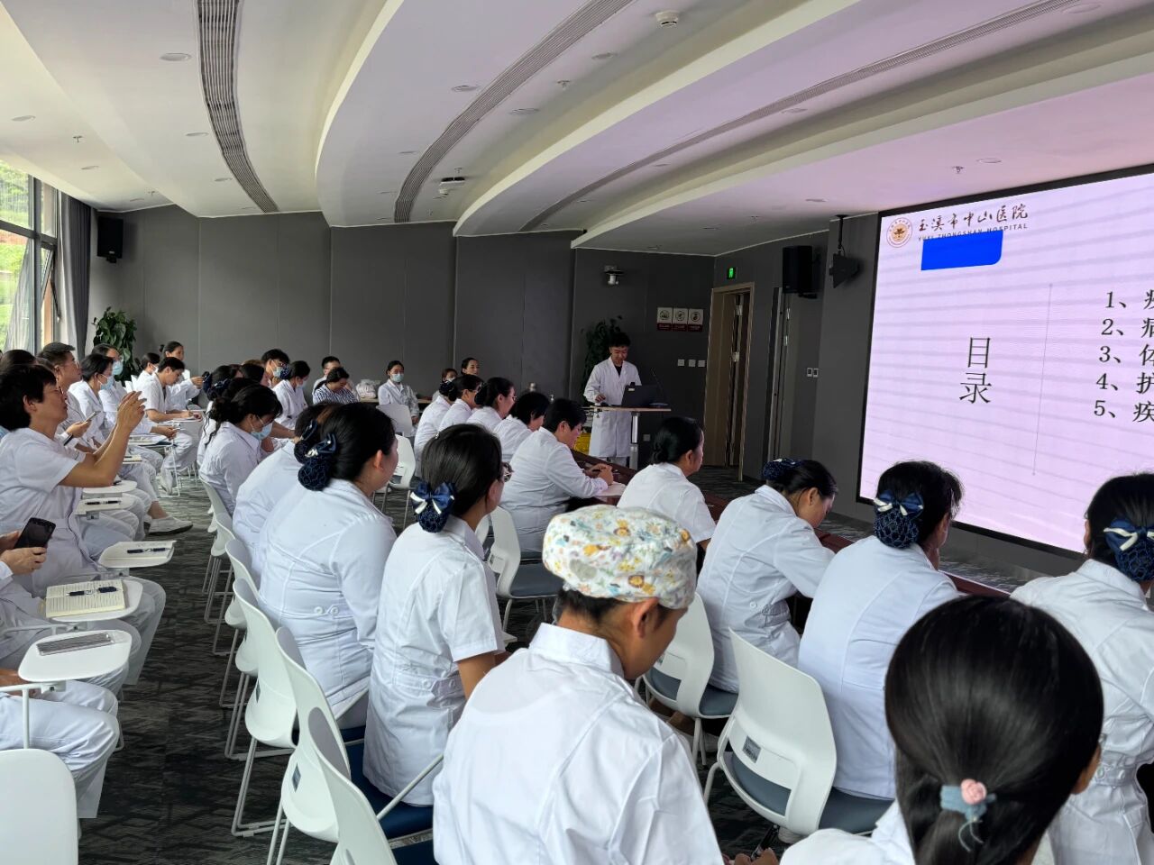 2025年7月9日,玉溪市中山医院护理部(感染管理科)在泌尿/神经/甲乳外科,开展了以“输尿管结石患者的护理”为主题的全院护理教学查房活动。旨在检验护理实习生学习成效,为护理部(感染管理科)及护理教学团队优化教学策略提供依据,进而提升实习生专业水平与教学团队临床教学能力,为患者提供更优质的服务。全院护理教学组长、护理教学秘书、非值班护理带教老师、合作学校护理实习组长及在该科室轮转的护理实习生共计61人参与。