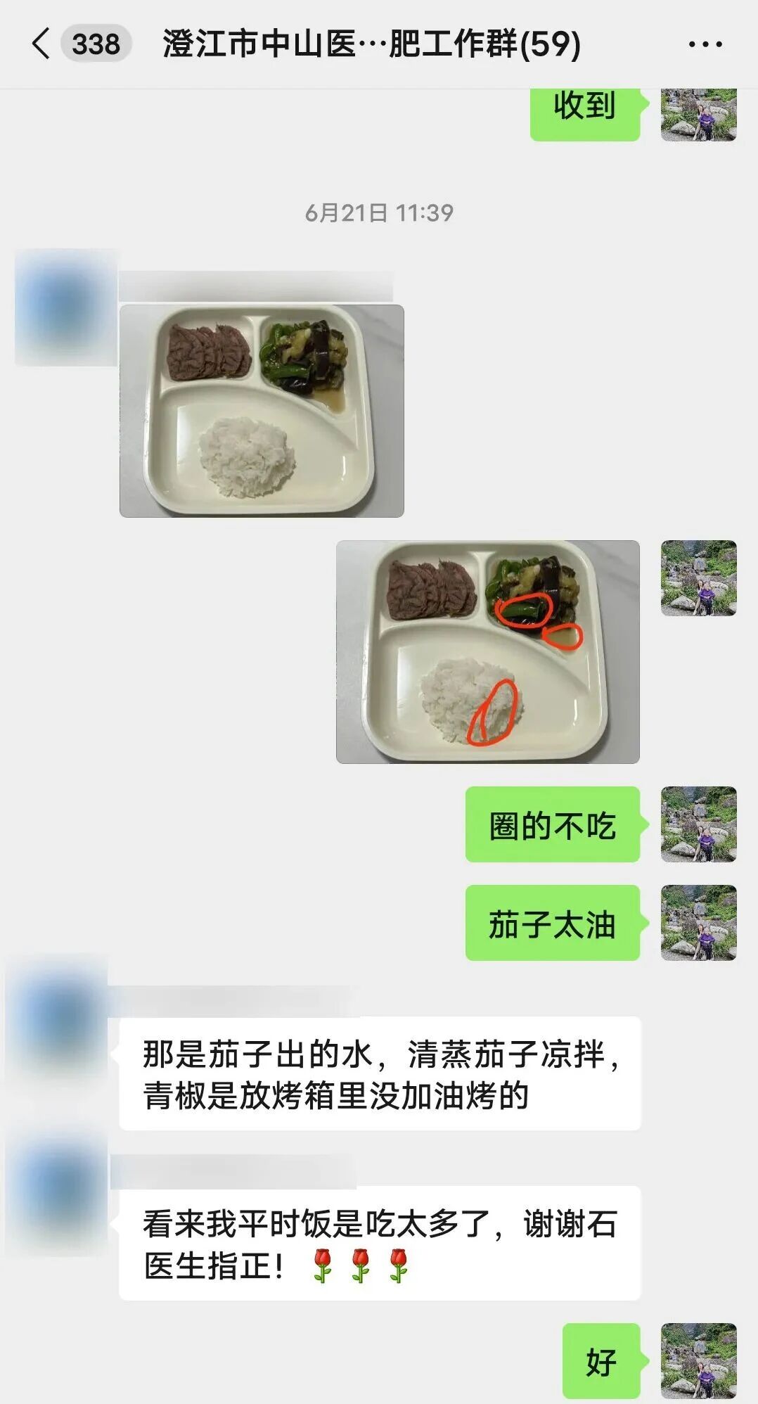 深入分析高女士的饮食结构后,临床营养科石红医生发现了关键问题:主食摄入超量、烹饪用油过多,且偏爱玉米、红薯等高碳水化合物食物,这些习惯正是导致脂肪堆积和代谢异常的“隐形推手”。结合她的生活规律和身体状况,石红医生为她量身定制了一套科学减重方案,从饮食和运动两方面双管齐下,加上微信群实时跟踪指导,确保方案能落地执行。