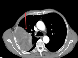 2024年12月,李大爷因持续“咳嗽、咳痰”就诊,经检查确诊为右肺腺癌,且病情已进展至IIIB期(cT4N2M0)(肺癌的临床分期,IIIB期属于中晚期,治疗难度较大)。当时,李大爷肺部肿瘤直径达11.5cm×7cm,同时伴随纵隔及肺门淋巴结肿大,不适合开展手术,治疗陷入僵局。