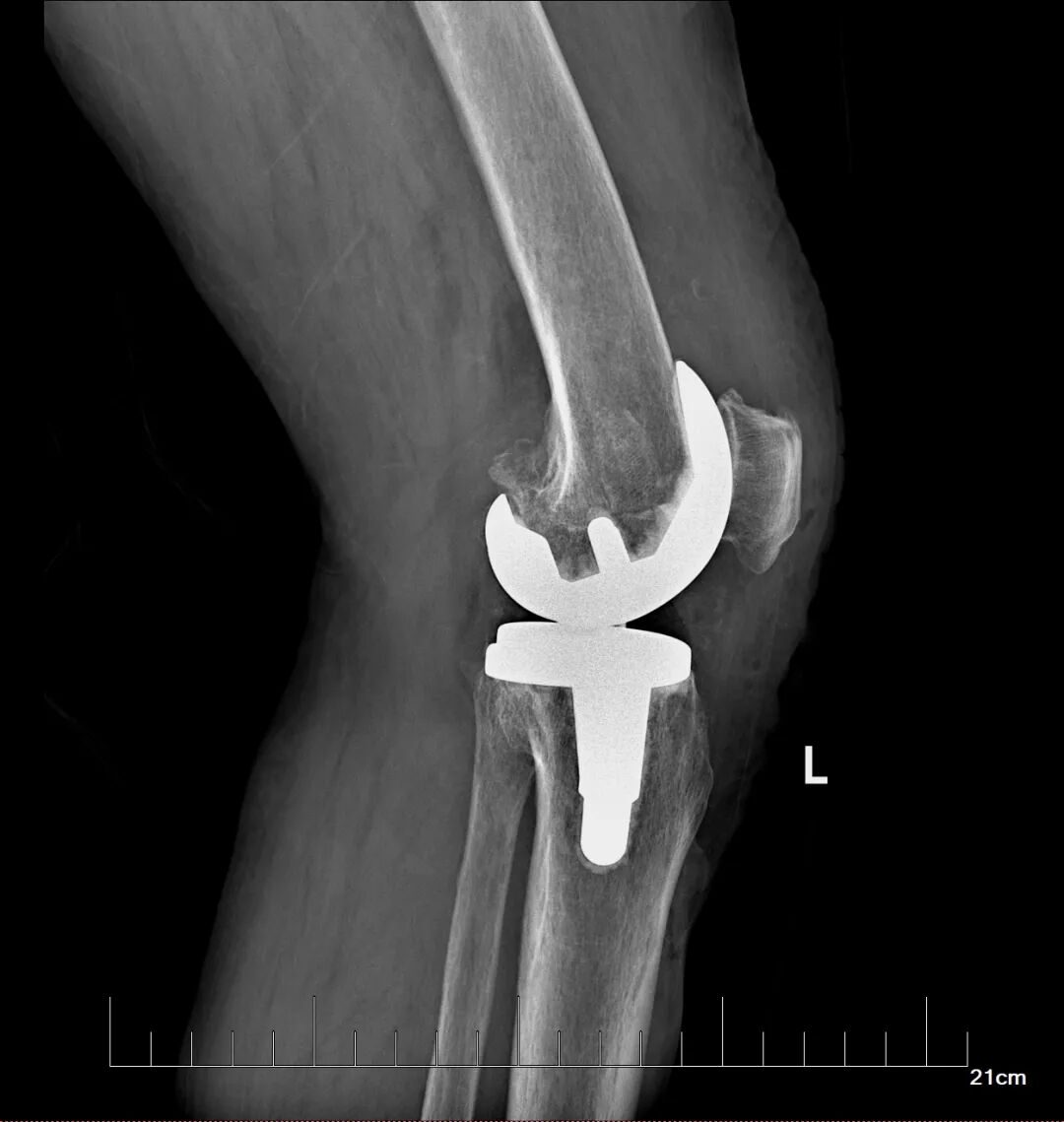 在充分的术前准备基础上,骨科蔡志荣主任带领团队,为李女士实施了左侧全膝关节置换术。团队凭借精湛的操作技术,精准完成了假体植入与软组织平衡,术中出血量仅30毫升,无需输血,患者生命体征平稳。得益于“快速康复外科”理念的应用,李女士在术后第二天就能在助行器辅助下站立并行走。恢复速度远超传统关节置换术后的康复进程,患者及家属对治疗效果赞不绝口。
