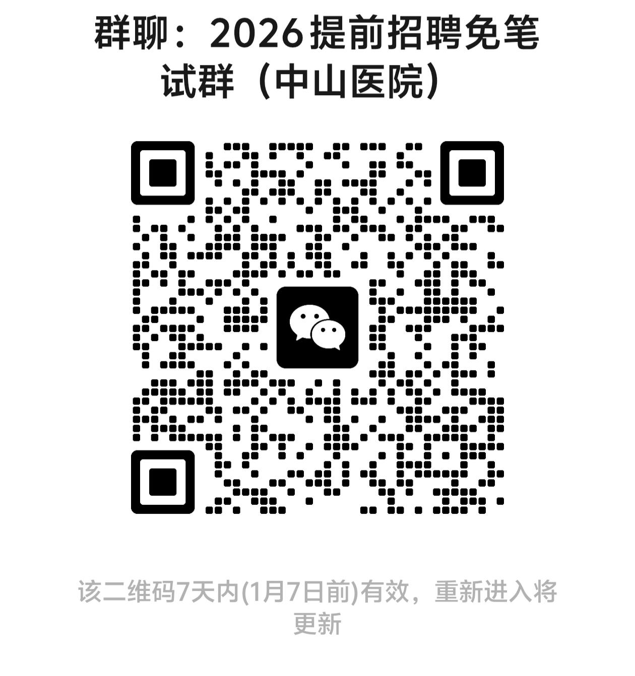 (2)凡报考中山医院(含需笔试及免笔试)岗位的考生,请扫码进群(二维码附后)。