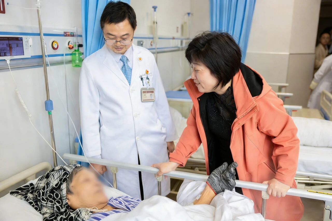 在消化疾病诊疗中心肝胆/胃肠/疝外科,陈静、段丽蓉一行亲切探视了两位住院患者。一位是93岁高龄来自四川的林奶奶,一位是75岁来自海南的杨奶奶。看望时,林奶奶紧紧握住陈静副市长的手,言语间满是感动:“谢谢领导还记挂着我们!”
