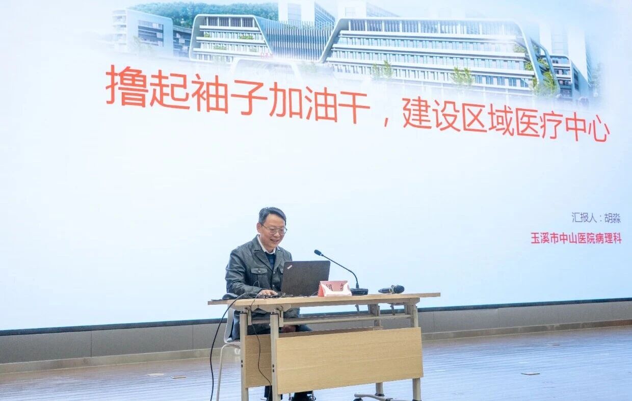 刚从云南省肿瘤医院进修归来的病理科副主任胡淼以病理科业务交流为重点作专题分享。他结合进修所学与科室实际,从科室发展宣讲、管理心得分享到未来思路谋划,既展现了病理科在诊疗技术上的硬实力,又传递了进修期间的宝贵经验。此次分享不仅搭建了跨科室协同沟通的有效桥梁,还为临床科室与病理科的高效联动奠定了坚实基础。
