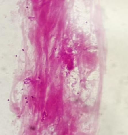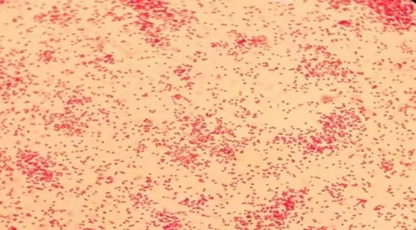 ▲显微镜下经革兰染色的淋球菌
