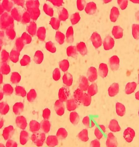▲革兰染色后显微镜下见白细胞内外革兰阴性双球菌