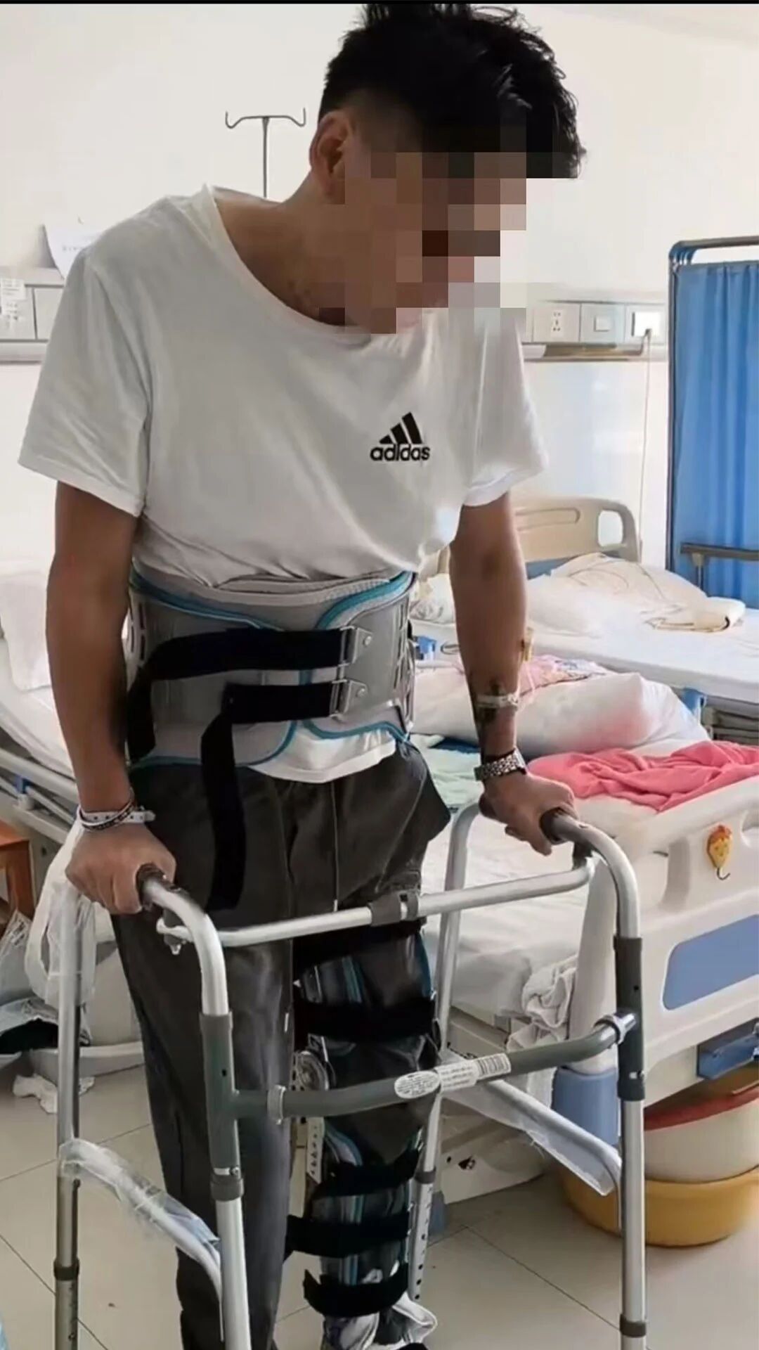 25岁的患者蒋先生,因不慎从五楼坠落致全身多处骨折,在外地经手术治疗后,双下肢活动困难、痛觉敏感、感觉异常,生活不能自理。为能早日回归正常生活,他来到玉溪市中山医院康复中心接受康复治疗。