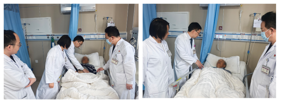 谭进富教授带领肝胆胃肠外科团队查看患者情况