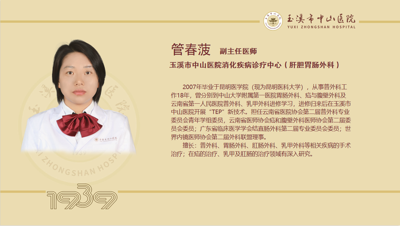 3月7日,玉溪市中山医院消化疾病诊疗中心肝胆胃肠外科将在院内举办“中国疝气宣传日”疝病义诊活动。中山大学附属第一医院胃肠外科专家谭进富教授、玉溪市人民医院胃肠—疝与腹壁外科主任医师靳波等相关诊疗专家将在义诊当日到院坐诊,欢迎广大患者及亲属前来咨询诊疗。