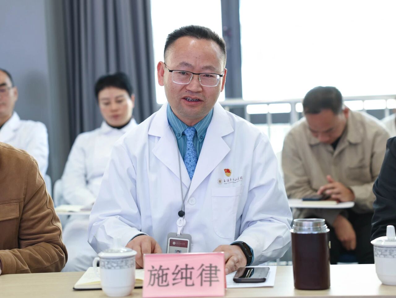 玉溪市卫生健康委员会副主任杨坤,玉溪市中山医院党政领导班子、中山一院派驻专家及医院科室负责人出席座谈会。院党委书记施纯律主持会议。