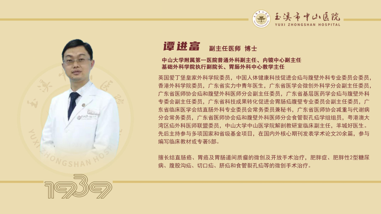 谭进富作为中山大学附属第一医院派驻玉溪市中山医院的胃肠外科专家,在减重代谢外科领域拥有近20年的丰富经验,已为大量肥胖症和2型糖尿病患者实施微创减重手术,疗效显著。身为玉溪市中山医院消化疾病诊疗中心学科带头人,他将引入“手术—康复—形体管理—心理支持”一体化服务体系,重点打造减重代谢外科多学科诊疗中心。