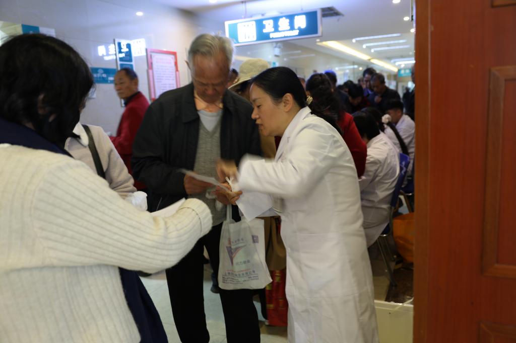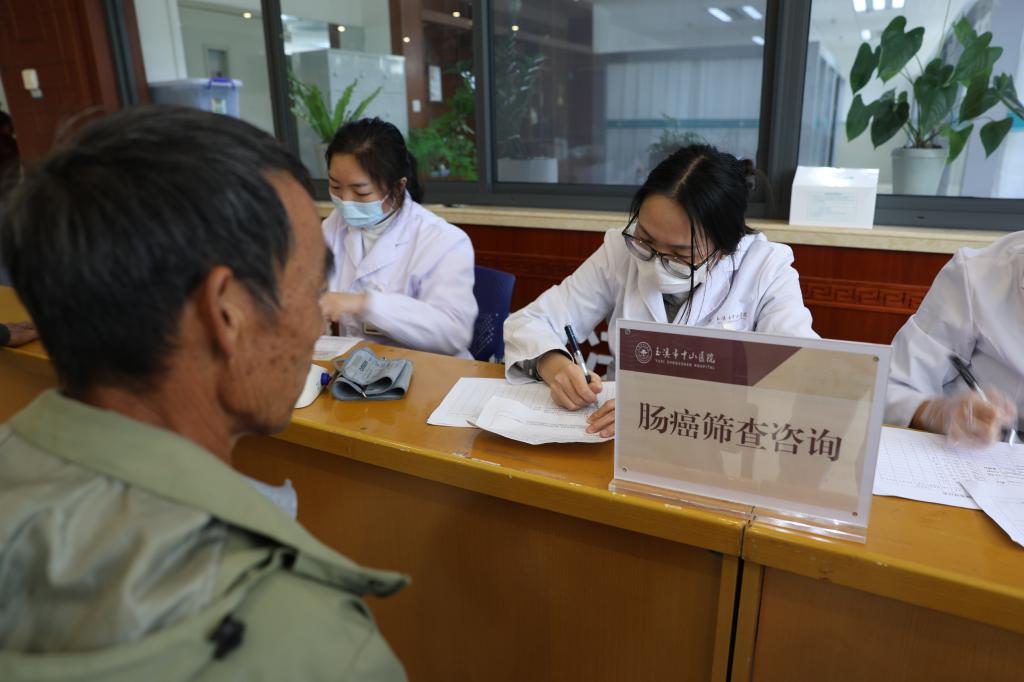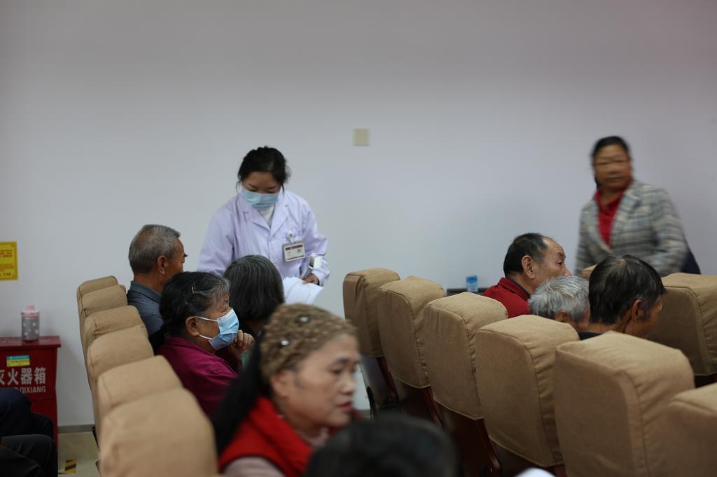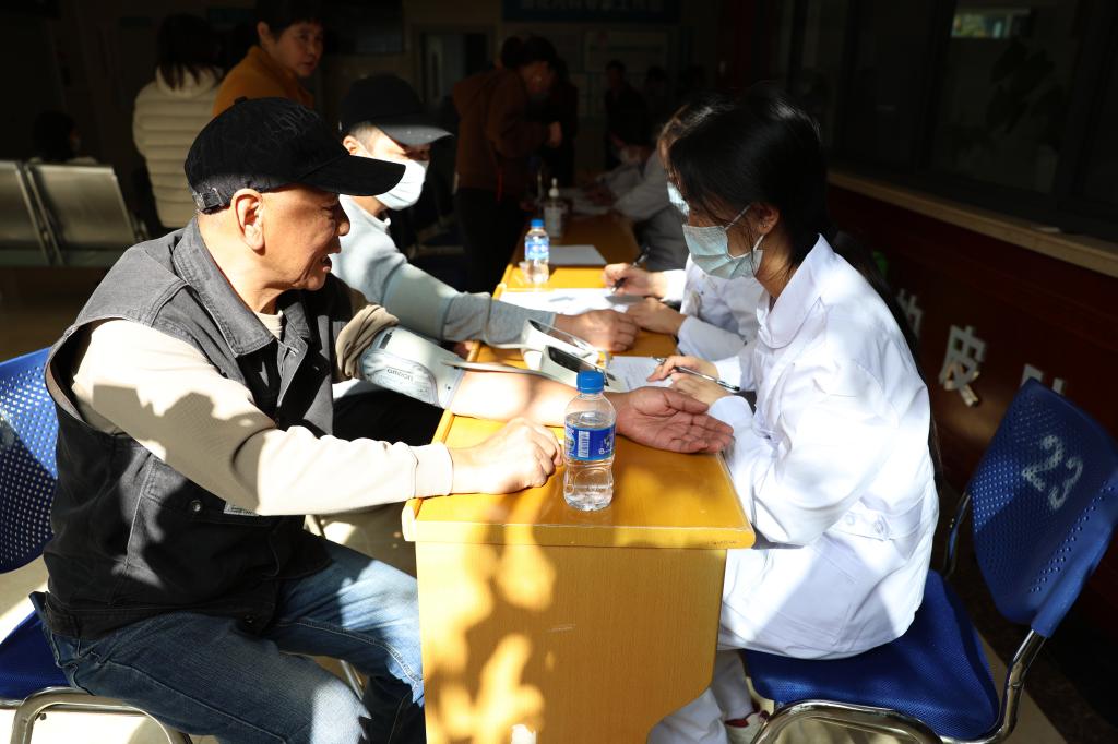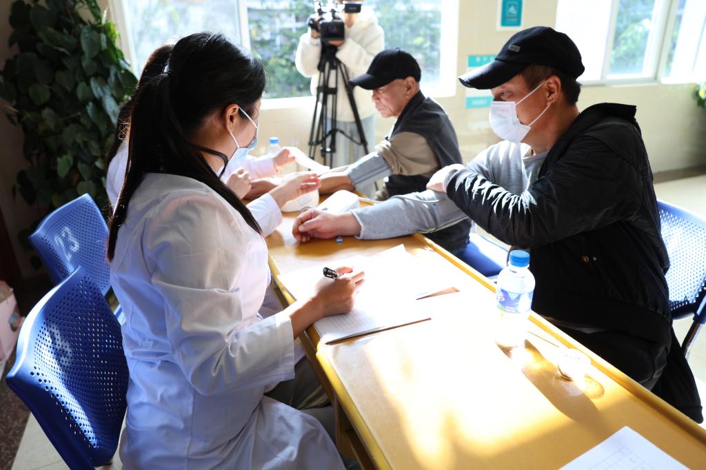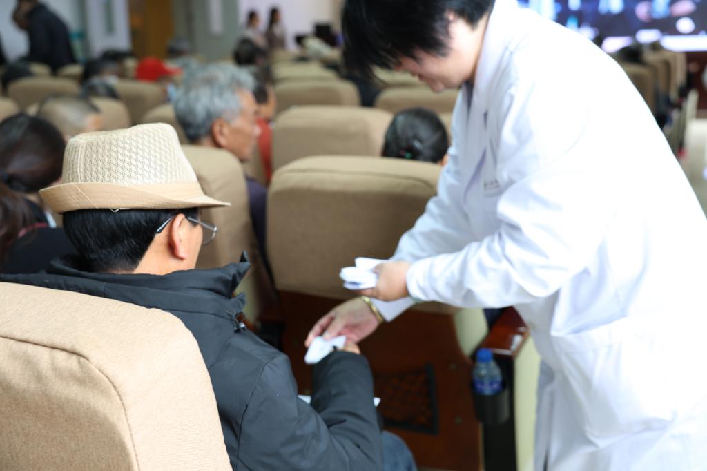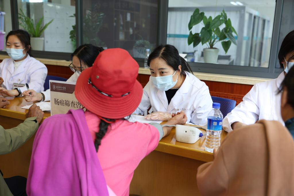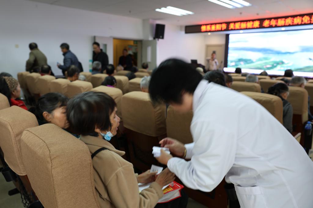 讲座结束后,义诊筛查有序开展。工作人员早已为老人们发放了号码牌和基础信息填写单,耐心指导大家填写:“爷爷奶奶们放心,我们按顺序叫号检查,今天一定把所有到场的人都检查完。”筛查现场设置了直肠指检、粪便潜血试验和血压测量等多个区域,医护人员细致地为每位老人进行检查,同时解答大家的疑问。“大爷,您平时在家血压控制得怎么样?这次测量结果很正常,继续保持好的生活习惯就行。” 血压测量区的工作人员一边记录数据,一边贴心叮嘱。
