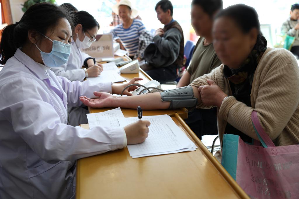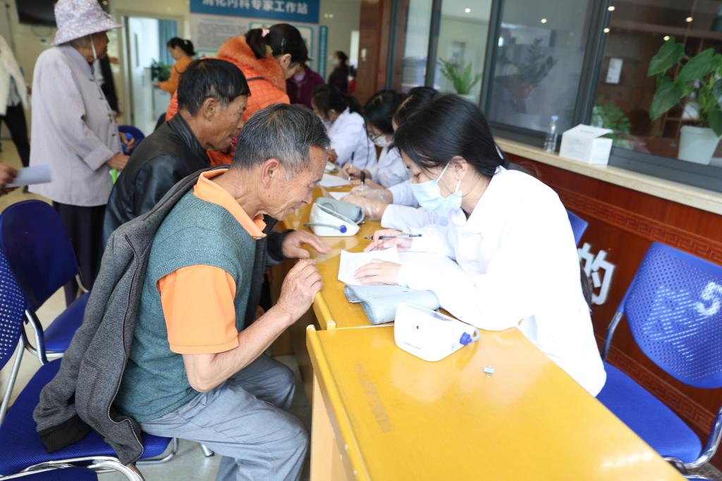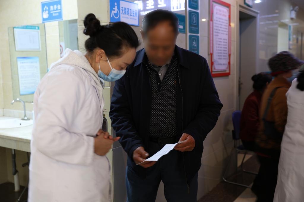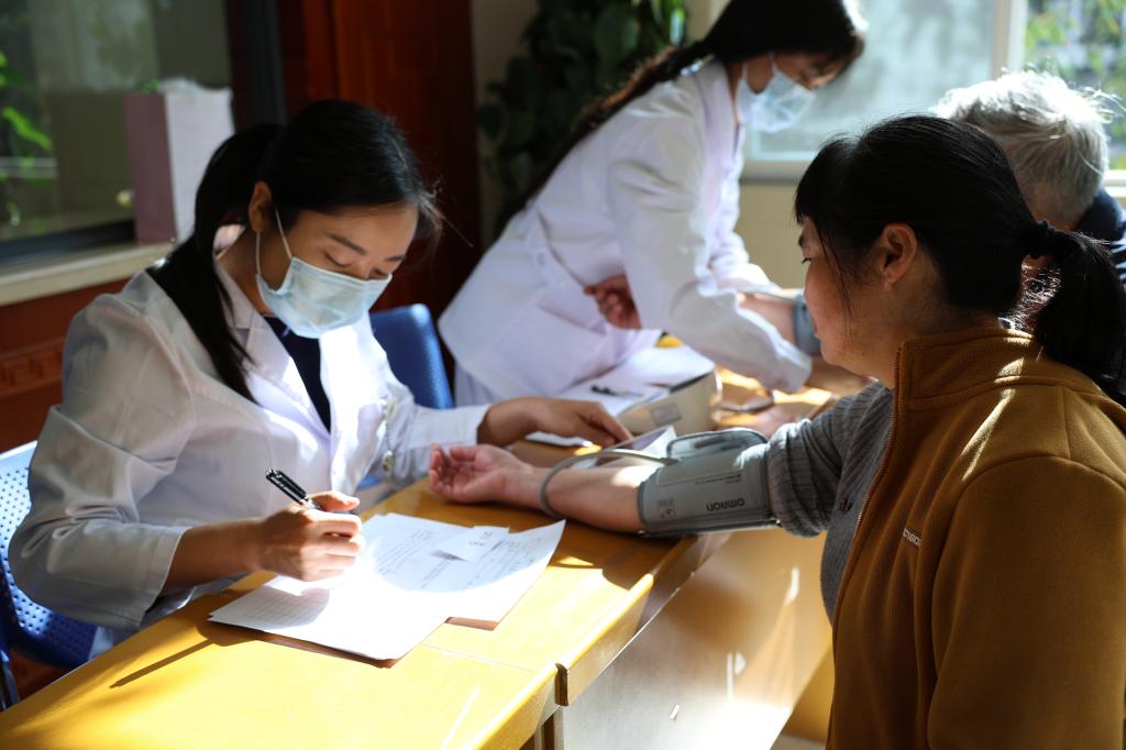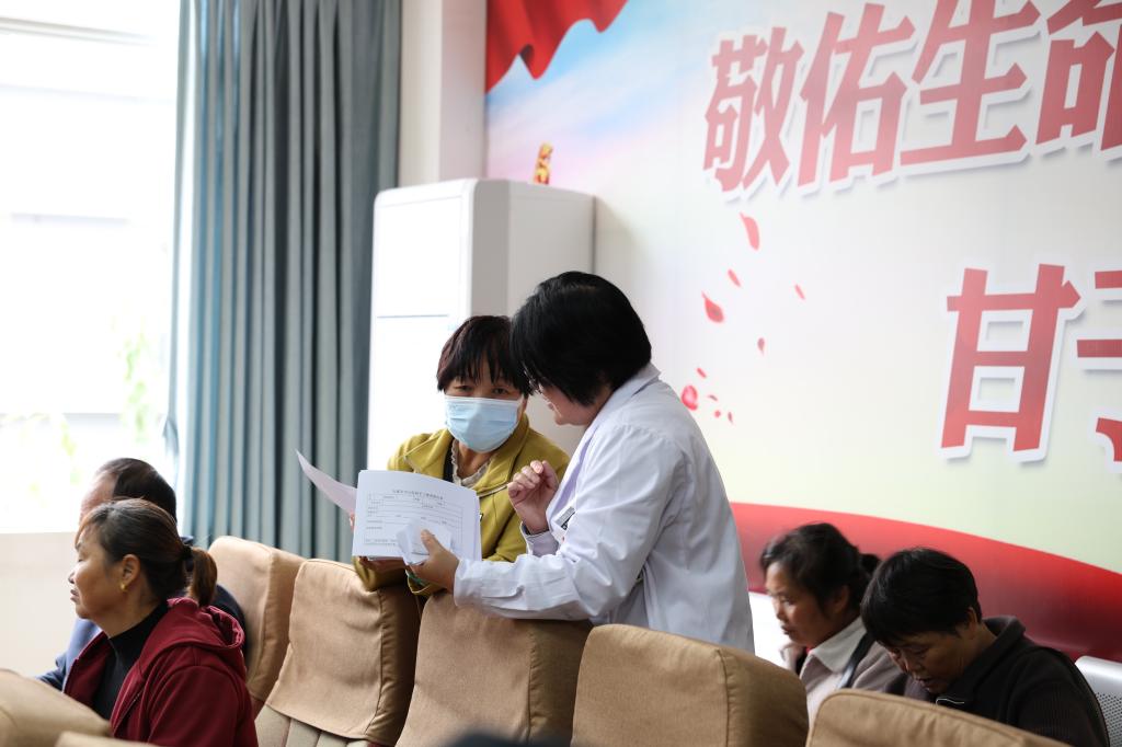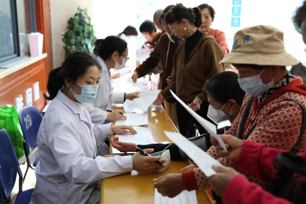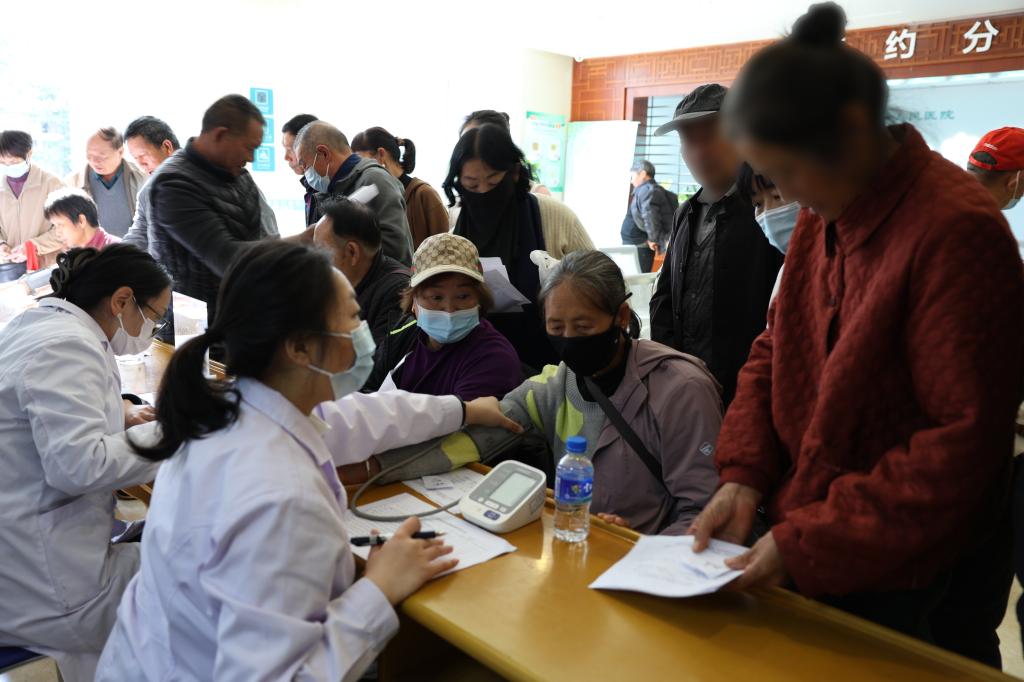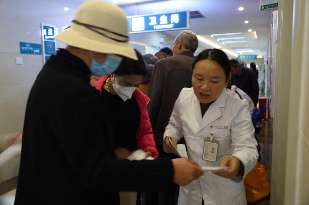 讲座结束后,义诊筛查有序开展。工作人员早已为老人们发放了号码牌和基础信息填写单,耐心指导大家填写:“爷爷奶奶们放心,我们按顺序叫号检查,今天一定把所有到场的人都检查完。”筛查现场设置了直肠指检、粪便潜血试验和血压测量等多个区域,医护人员细致地为每位老人进行检查,同时解答大家的疑问。“大爷,您平时在家血压控制得怎么样?这次测量结果很正常,继续保持好的生活习惯就行。” 血压测量区的工作人员一边记录数据,一边贴心叮嘱。