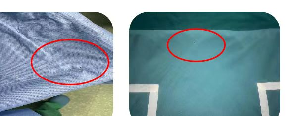 3.查看灭菌包包装完好性。棉布类包装,检查包布是否清洁干燥、有无破损。纺织类包装材料表面是否破损、是否清洁干燥。纸塑袋按压检查是否漏气。以上包装材料表面如有破损,则灭菌包的无菌屏障已破坏,不能使用。