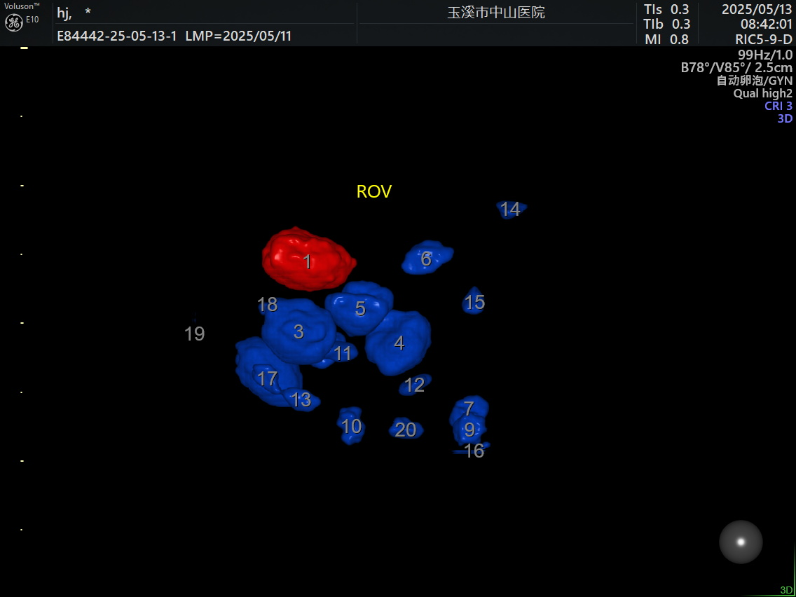 精准度升级,减少漏诊误判:传统二维超声受限于平面视角,在检测窦卵泡时,部分卵泡可能因位置、角度等因素被遮挡,导致漏诊。三维超声窦卵泡计数(3D-AFC)技术则利用高分辨率三维超声立体成像,能从多个维度对卵巢进行扫描,全面捕捉窦卵泡信息,极大降低了卵泡计数误差,让医生获取的数据更加准确可靠。