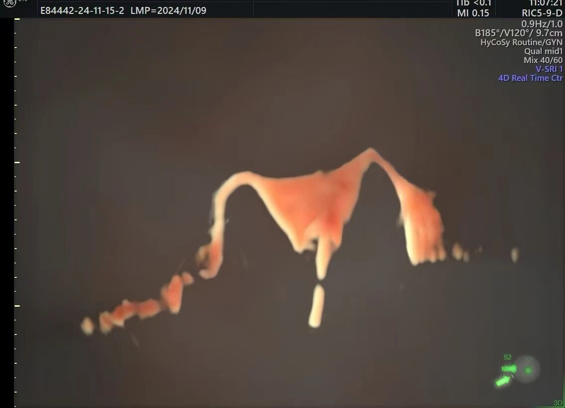 36岁的尚女士因长期未能自然受孕,到玉溪市中山医院妇产科就诊。在详细了解尚女士的病情后,妇产科医生迅速与超声科展开深入沟通,经过严谨的病情评估,决定为尚女士行四维输卵管造影检查。检查过程中,超声造影提示:左侧输卵管通畅,右侧输卵管通而不畅,为临床的进一步诊治提供依据。