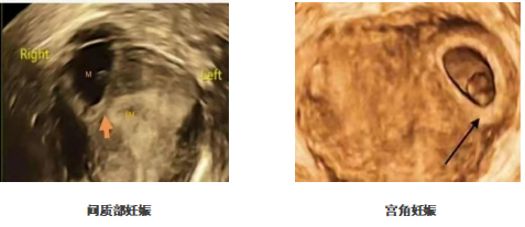 5.二维超声中某些特殊部位的妊娠如间质部妊娠、宫角妊娠等容易被忽略的情况。