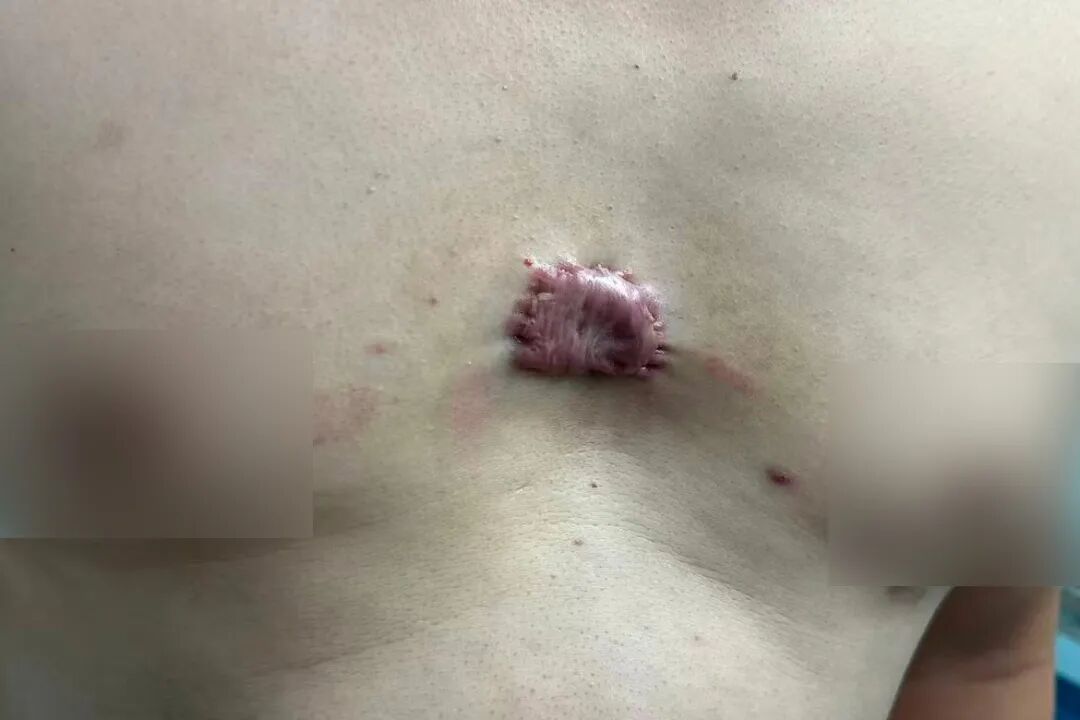 小王胸口长了颗青春痘,随手挤了之后伤口发炎、流脓。等炎症消除后,胸口却留下了一块硬疤,而且两年里慢慢变大,摸起来像石头一样硬,天热时又痒又胀,穿衣服摩擦到都难受。他试过网上买的“祛疤精油”,涂了3个月一点用都没有,便想着来医院。