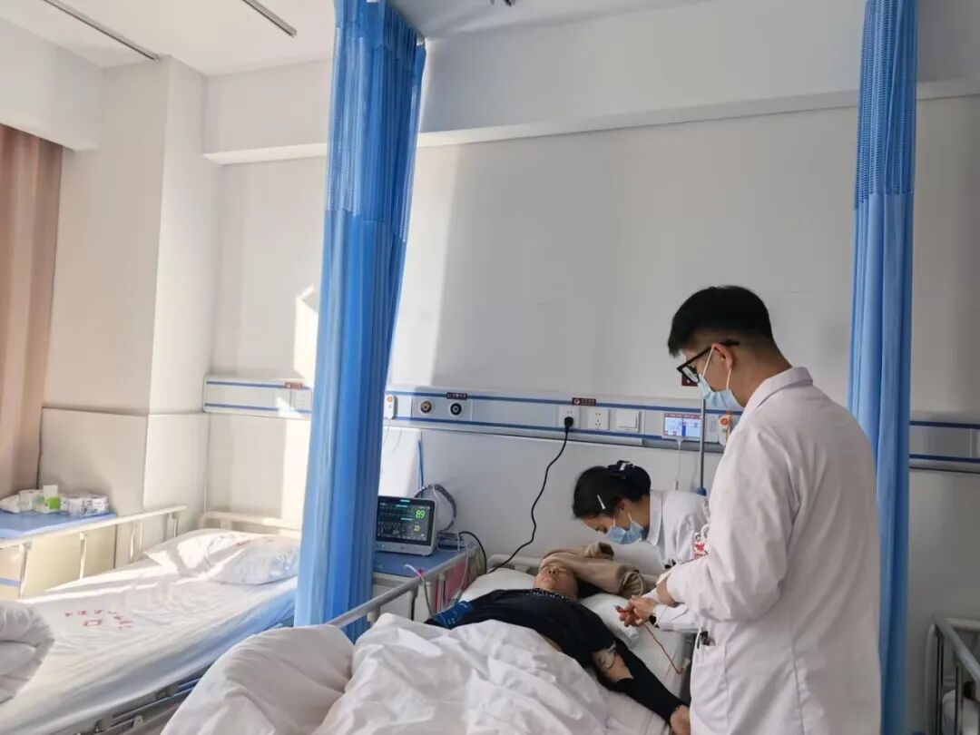 为保障动脉压迫器安全高效应用,科室建立专业保障体系:选派护理骨干赴中山大学附属第一医院(国内介入诊疗标杆)进修,熟练掌握设备操作与风险防控;再以“骨干带教+实操演练+案例复盘”培训全体护理人员,从穿刺点 “毫米级定位” 到术后观察细节反复考核,实现“人人会操作、个个能应急”,筑牢诊疗安全防线。
