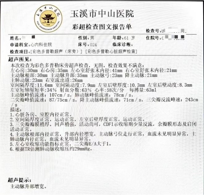术后监测数据显示,杨先生胸痛症状缓解,生命体征趋于平稳,心肌标志物水平逐步恢复正常,心脏超声检查提示射血分数维持在正常范围。经过8天的精心诊疗与护理,杨先生康复状况良好,顺利出院。出院1个月后复诊,杨先生已无任何不适症状,日常生活完全恢复正常。