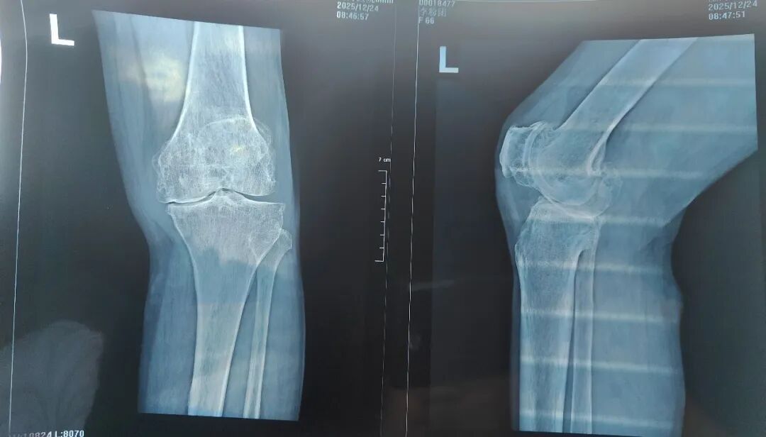 玉溪市中山医院骨科成功为一名饱受膝关节疼痛30余年的患者实施了左侧全膝关节置换术。患者术后恢复良好,第二天即可在助行器辅助下站立并行走,实现了“早活动、早康复”的快速康复目标。