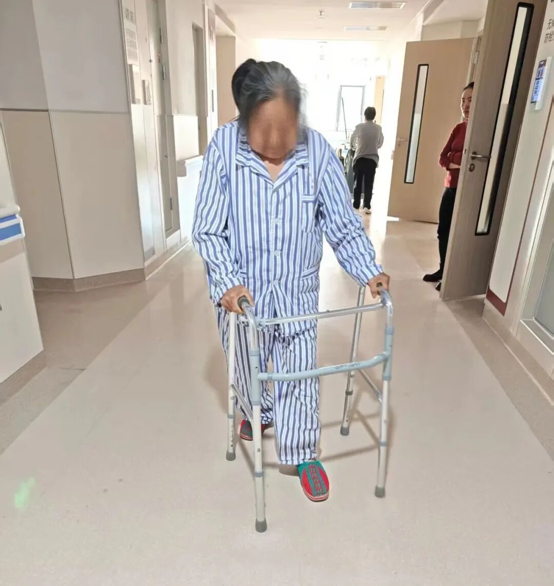 在充分的术前准备基础上,骨科蔡志荣主任带领团队,为李女士实施了左侧全膝关节置换术。团队凭借精湛的操作技术,精准完成了假体植入与软组织平衡,术中出血量仅30毫升,无需输血,患者生命体征平稳。得益于“快速康复外科”理念的应用,李女士在术后第二天就能在助行器辅助下站立并行走。恢复速度远超传统关节置换术后的康复进程,患者及家属对治疗效果赞不绝口。